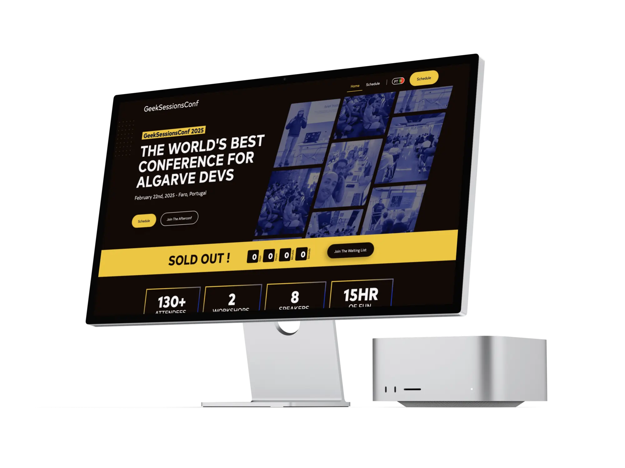GeekSessionsConf is a bold and dynamic website created to promote and manage the Algarve’s biggest tech conference. Designed for clarity and impact, it features an energetic visual identity, detailed event scheduling, and clear CTAs to engage attendees and sponsors alike.