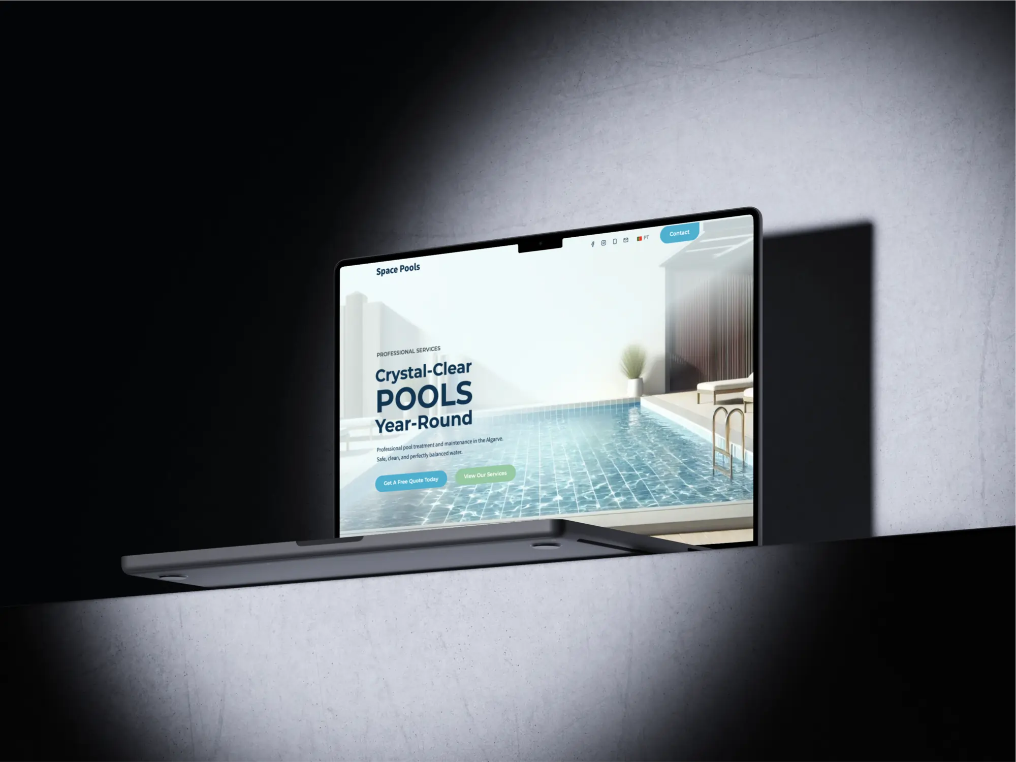Space Pools is a professional pool treatment and maintenance company based in the Algarve. The website was designed to reflect their reliability, technical expertise, and dedication to crystal-clear results. Combining elegant design with functional structure to attract new clients and build trust.
